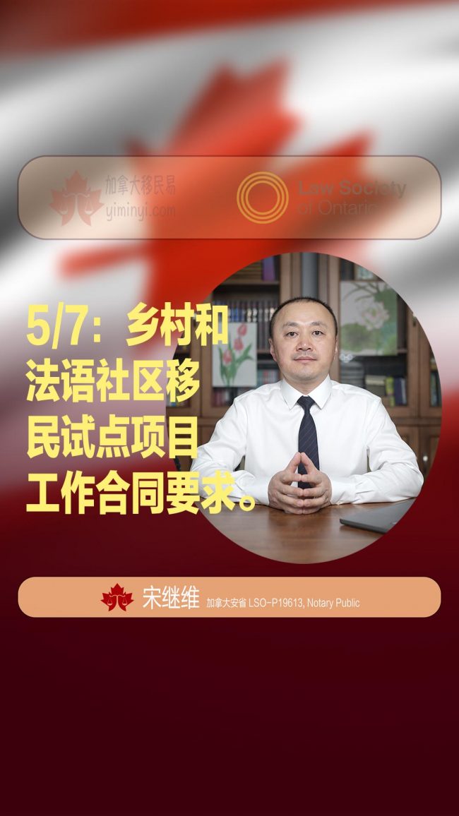 大家好,我是宋继维,如果大家申请乡村和法语社区移民试点项目,对于签约的工作合同是有一定要求的,具体来说有这些:…