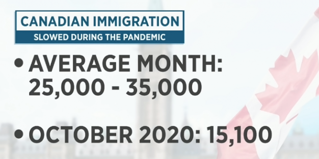去年,加拿大接收的海外移民不到18.7万人,是1998年以来最少的,只有2019年接收的移民人数的一半。
