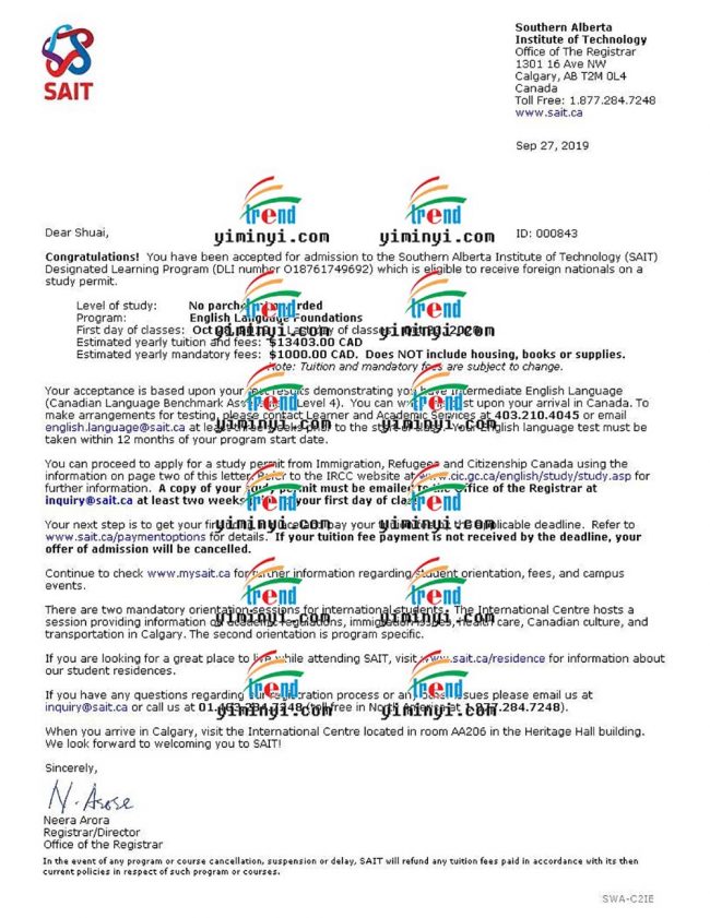 缩放详细 任先生,加拿大SAIT学院的录取通知书。留学案例yiminyi2019年9月30日客户名称:任先生 申请类别:加拿大学校录取通知书 申请结果:通过 申请周期:2019年9月 任先生,1981年…