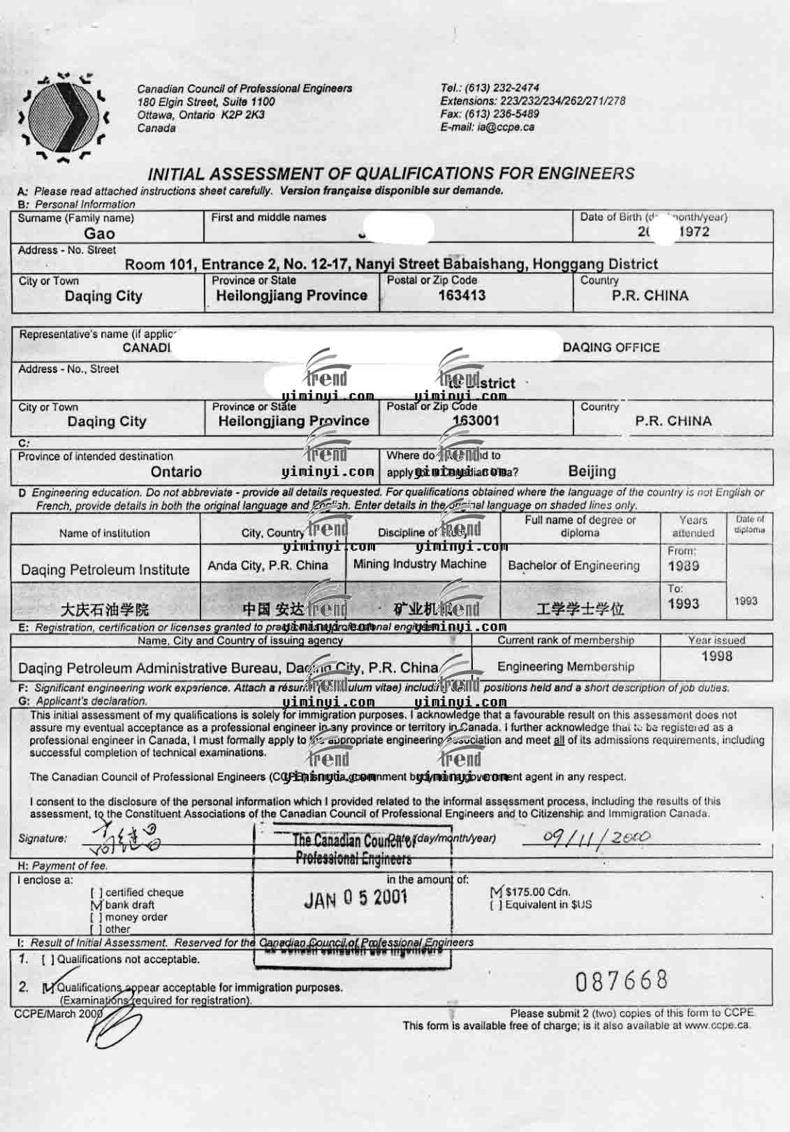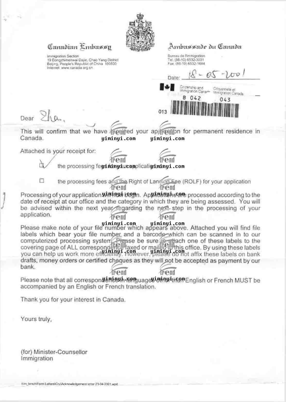 缩放详细 移民易出国网:加拿大联邦技术移民-使馆回信,战先生,单身,二年半申请成功。移民案例yiminyi2003年11月11日客户名称:战先生 申请类别:加拿大联邦技术移民 申请结果:通过 申请周期:2001年3月-2003年11月 战…