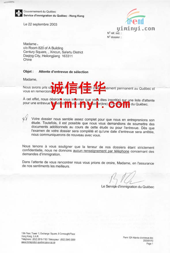 客户名称:面试信 申请类别:加拿大联邦和魁北克移民 申请结果:通过 魁北克省的移民,一般都需要面试,而且面试的…