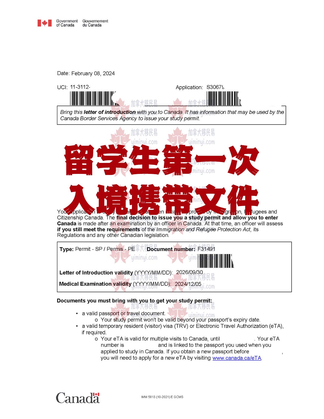 缩放详细 国际留学生,第一次入境加拿大的时候需要携带的文件。其他案例yiminyi2024年10月4日这个IMM5813文件,是国际留学生申请成功加拿大留学签证之后,给的最后一封信,留学生本人必须要认真阅读这个文…