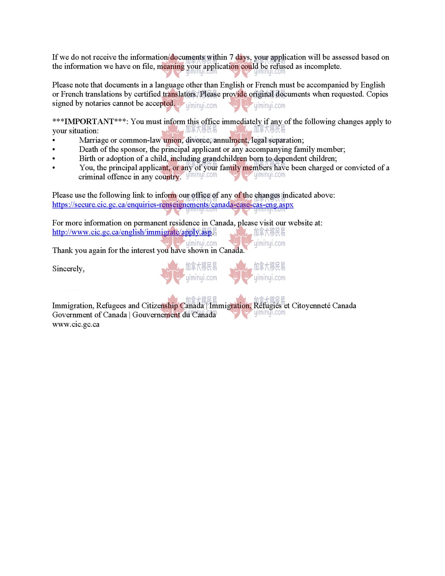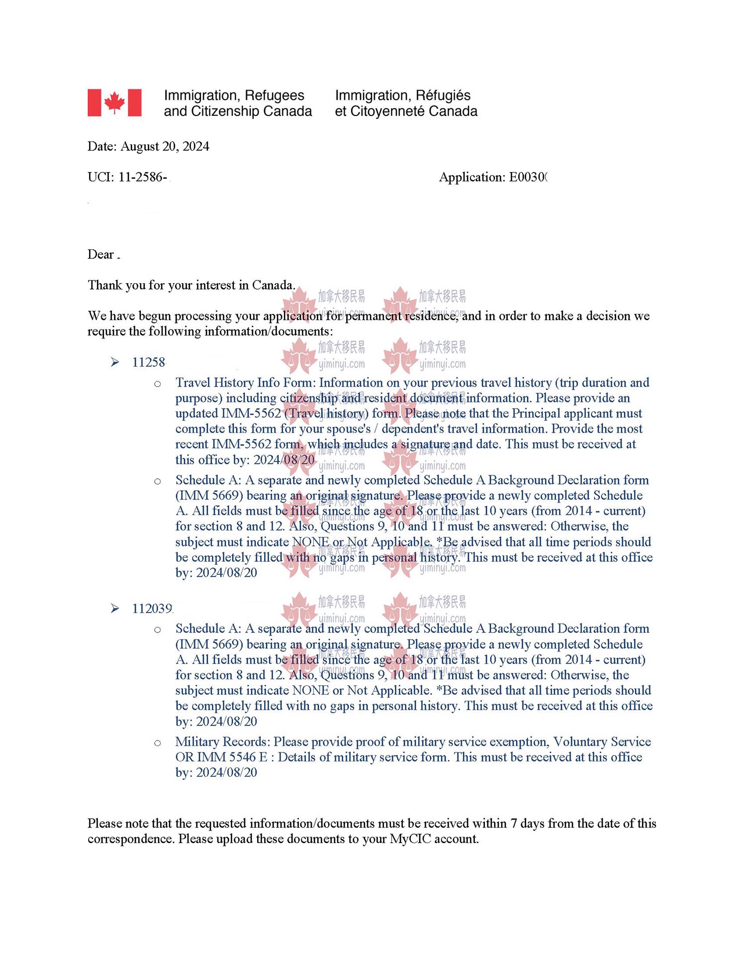在这个补料通知中,移民官犯了一个错误,这个补料通知签发日期是8月20日,但下面的4个文件要求在8月20日内补充,而补料信第一页的下面,第二页的上面也明确说了只给7天的时间。另外,如果由于特殊原因没有在这个时间内递交,也不要急,但要提供理由和充分的证据。