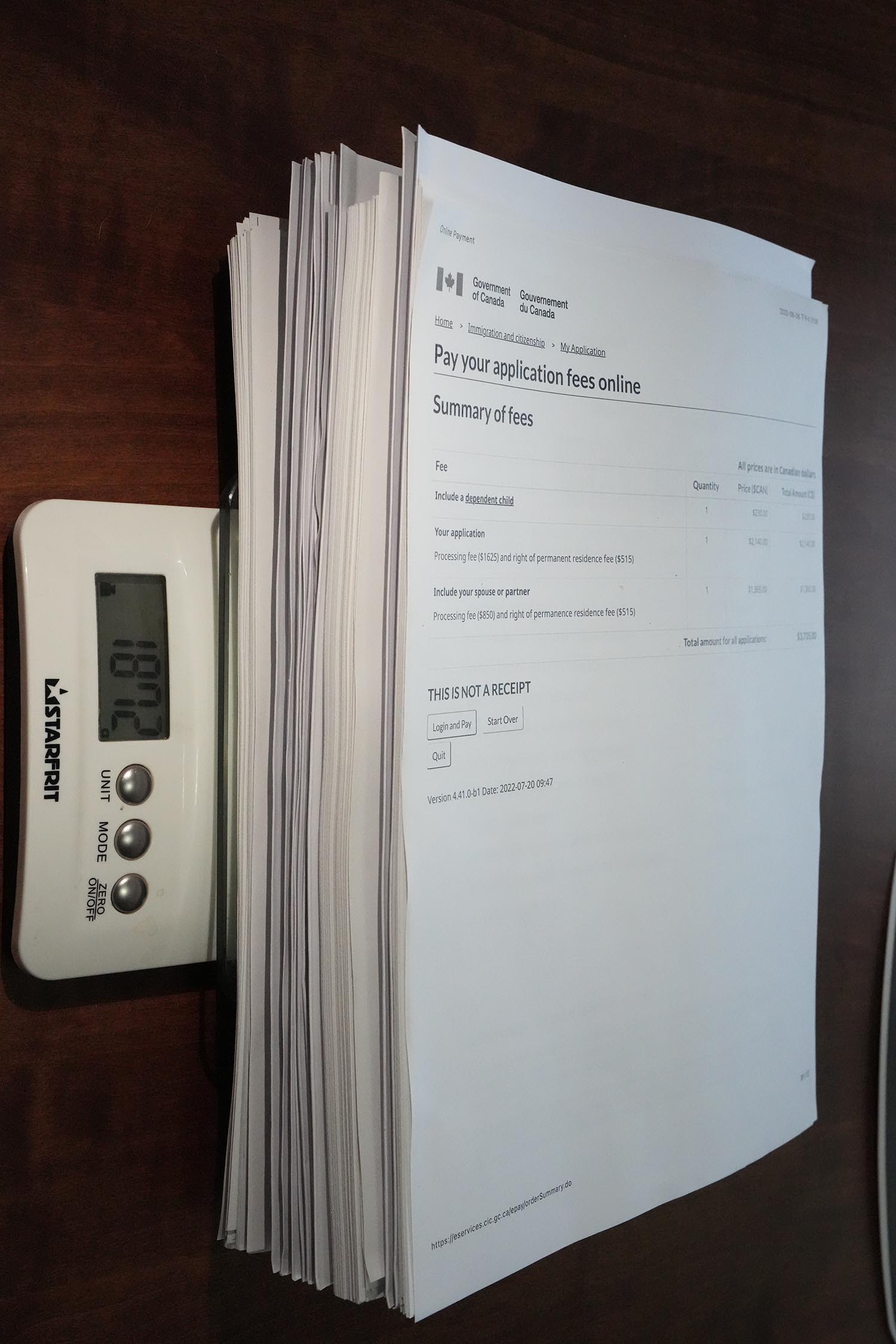 我是在2022年8月22日邮寄的文件给移民部(看图4,是1.8公斤多的文件,实际上在2023年还补充了一次材料,等以后和大家分享),当时还是用的纸质文件,加拿大移民部悉尼的受理中心在2022年8月26日收到的完整文件,然后在2022年11月9号签发的临时档案号码。在2024年6月18日签发了正式的档案号码,要求LINK到我的持牌账户中。在2024年8月20日收到第一次补料通知,要求补充主申请人的旅行记录,祝福申请人的5669表格。还有副申请人的未服役证明。