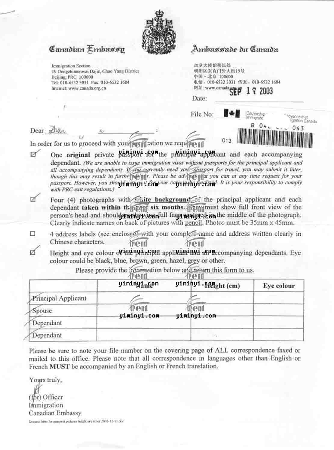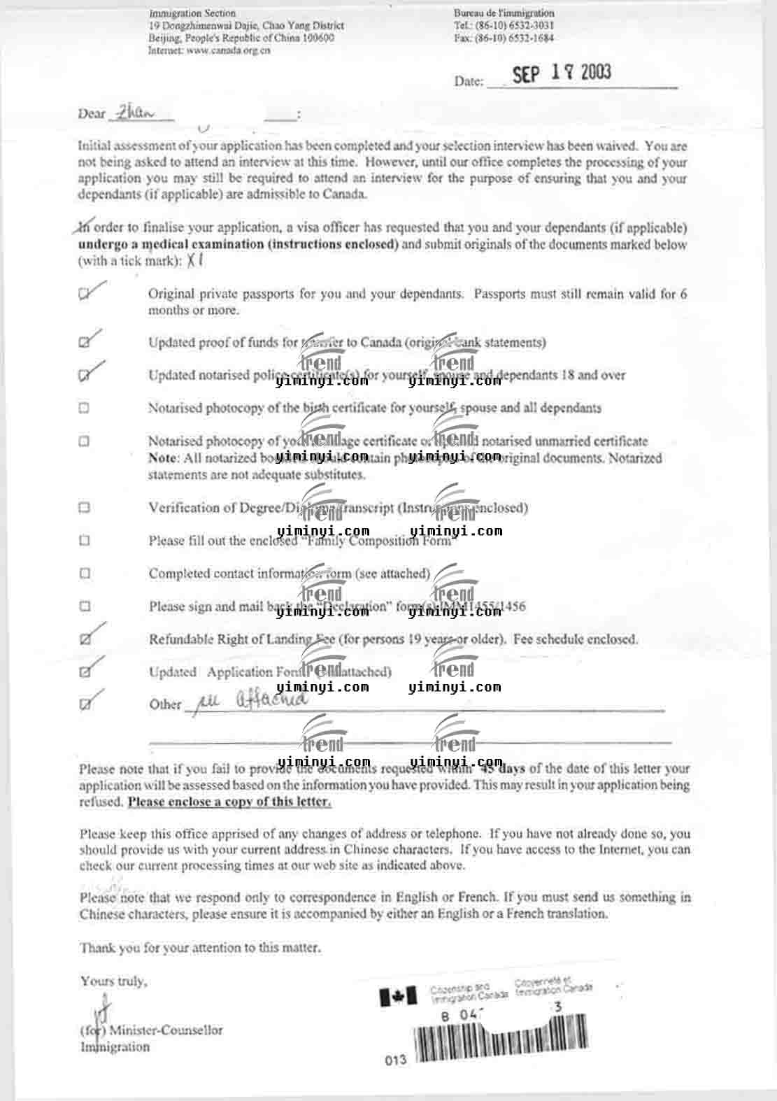 战先生,1969年出生,1988-1992年在Dalian University of Technology就读,专业是化学,获得工科学士学位,毕业后一直在大庆油田从事化学防腐工作。2001年3月开始申请加拿大移民,在2003年9月获得体检表,同年11月获得加拿大的移民签证。。。在本文中,我们提供了申请人的教育背景、学历认证、初审通知、复审通知、体检表和体检指南等文件。。。。。。
