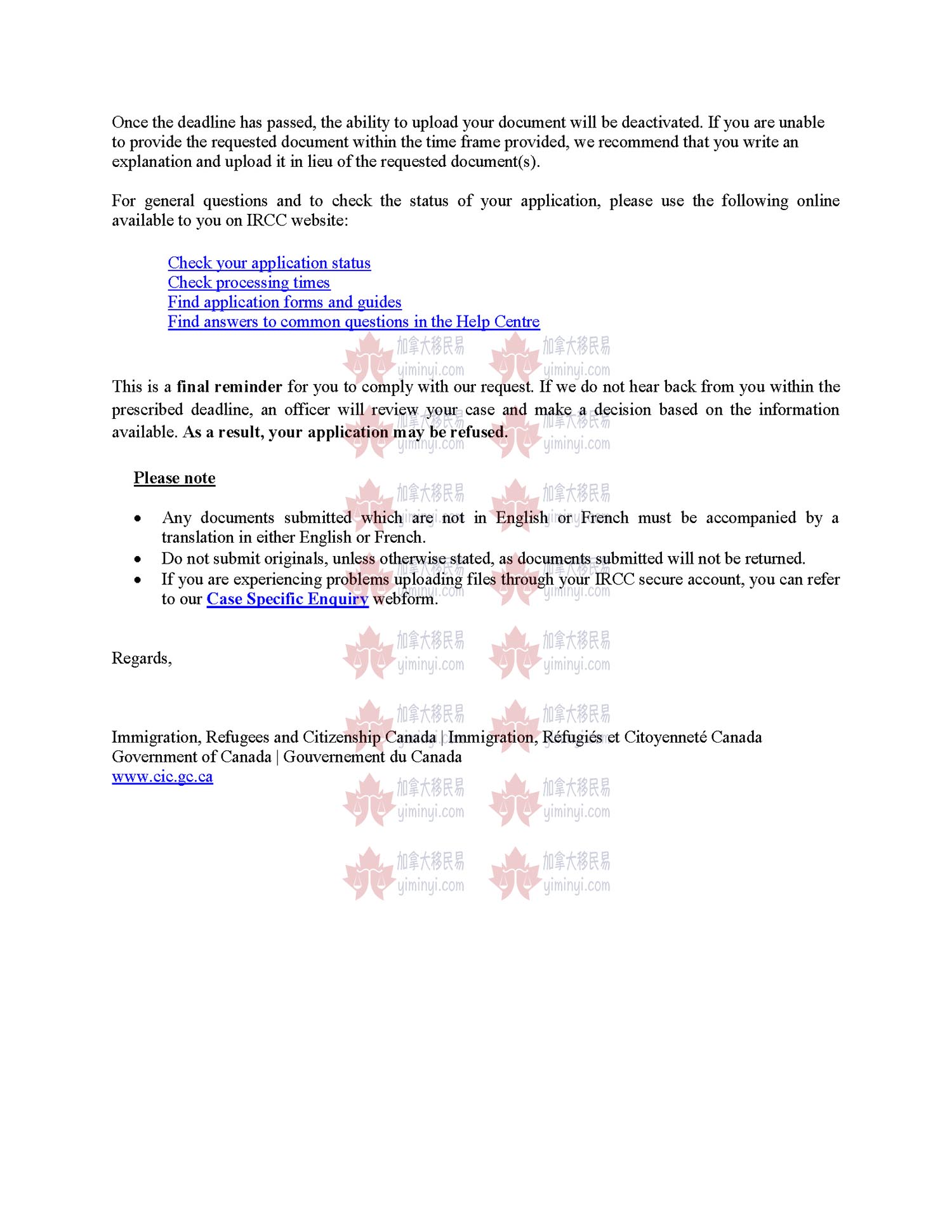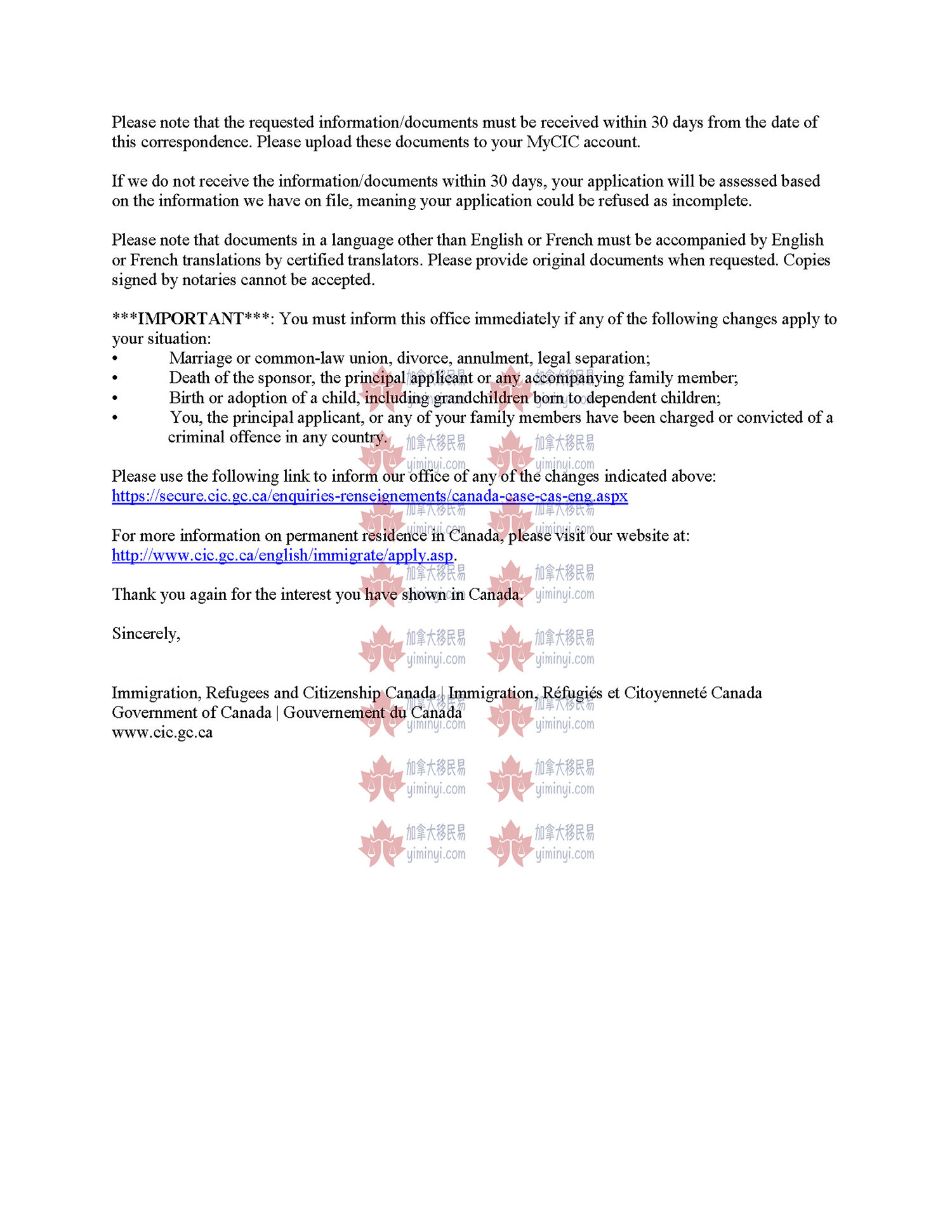这几封信是加拿大联邦自雇移民的补充材料通知,大家在补充材料的时候,一定要严格按照里面的要求。由于特殊的原因,不能完全按照要求的话,就需要额外的说明加以旁证,或者提供声明书。另外在申请期间的任何变化,都要及时的通知移民部。如果需要我们后期补料的技术支持,可以找我们。