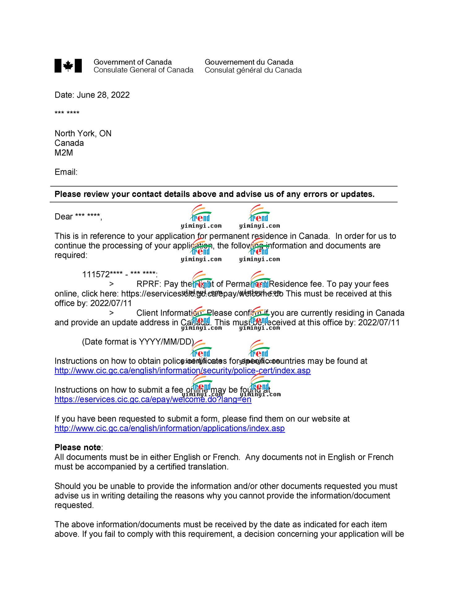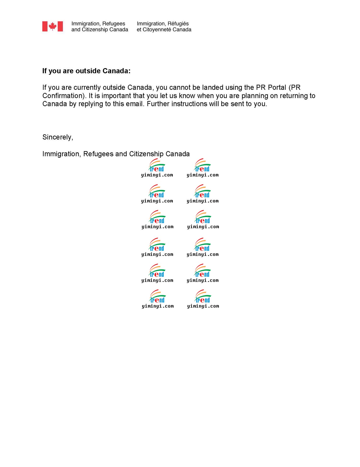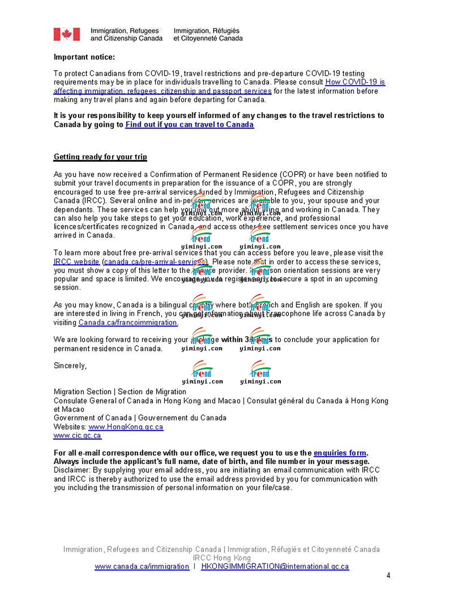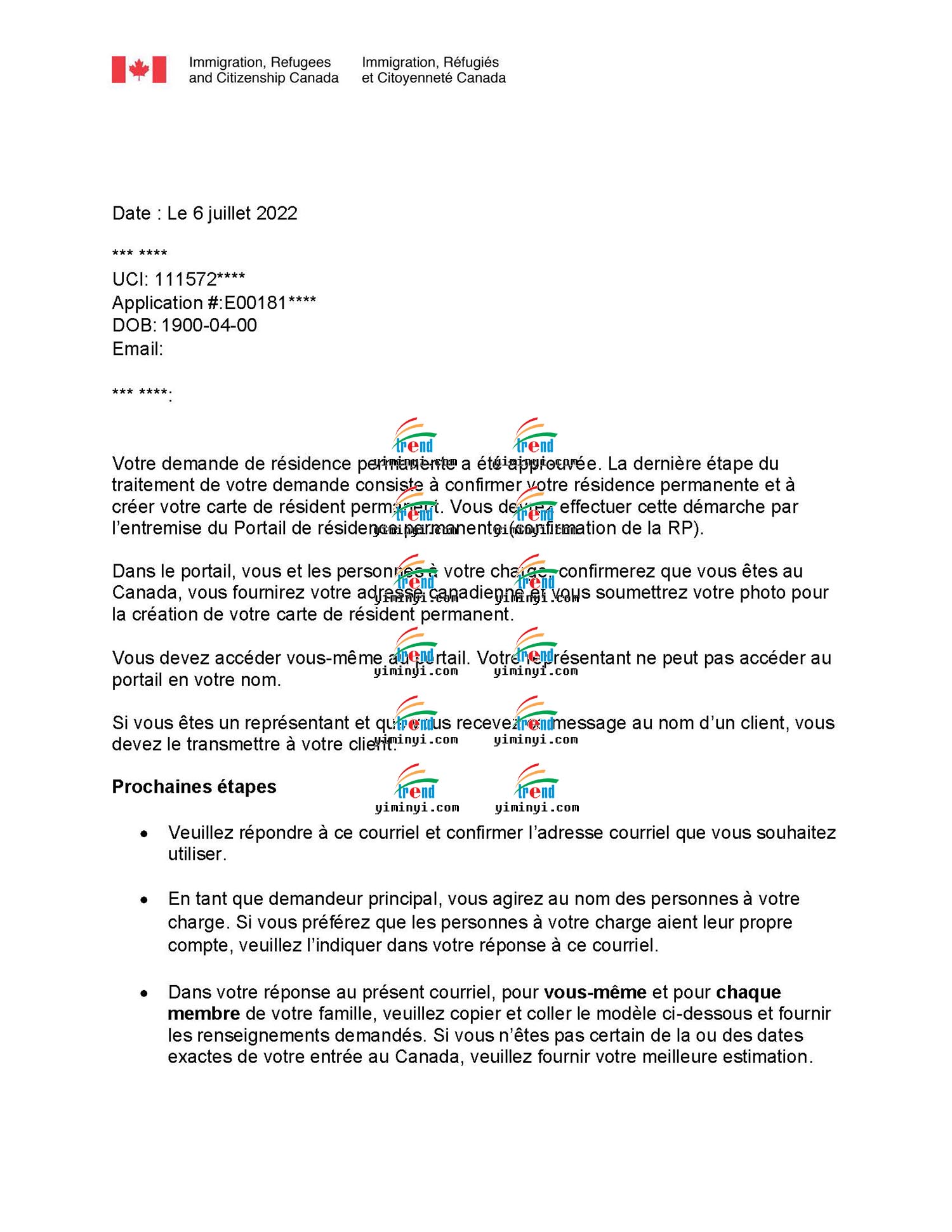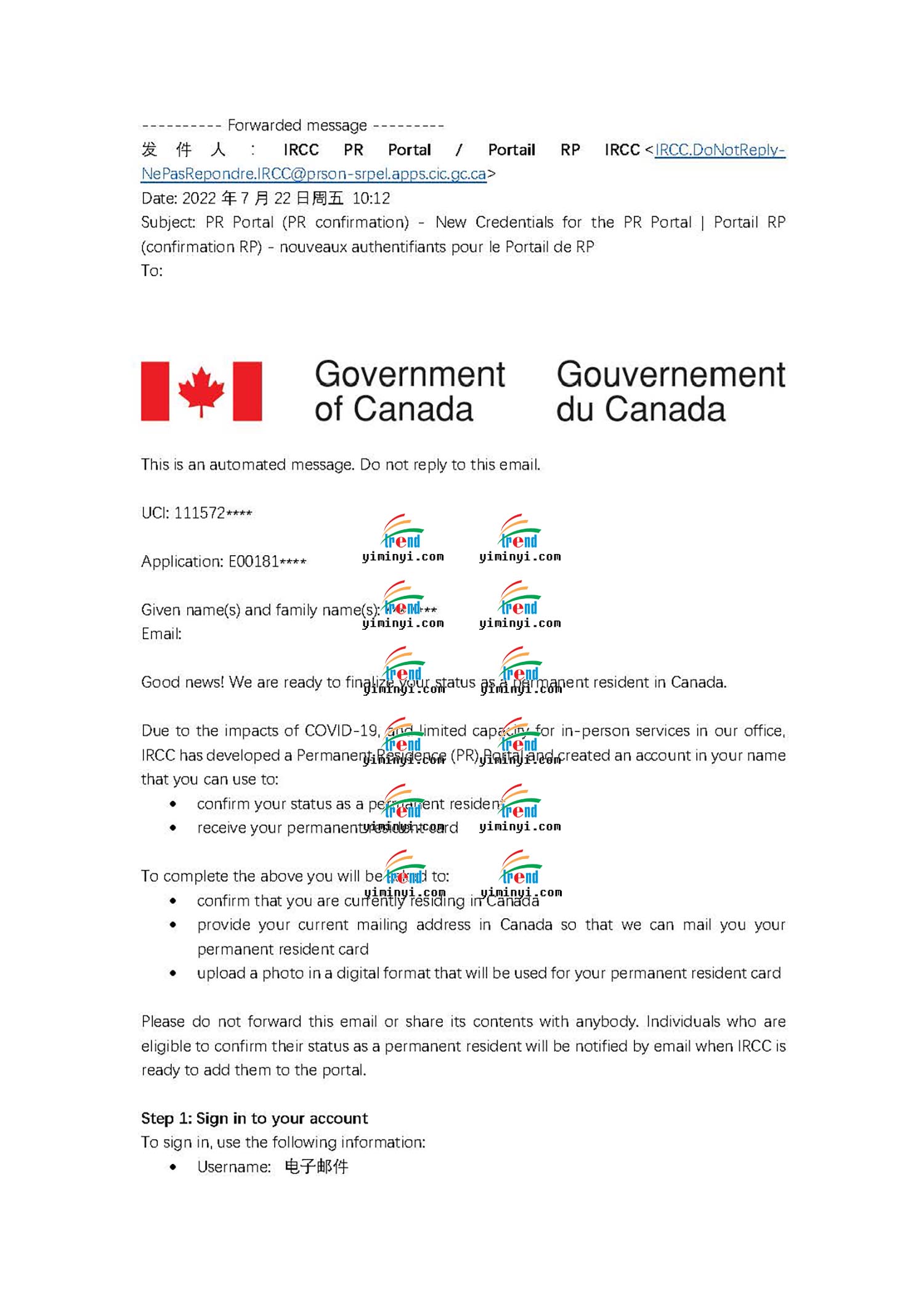 现在申请移民的程序随时都会变好,这次是主申请人在境内,移民部发送了一个PR PORTAL给客户,让客户自己登陆上去之后确认PR的身份。移民官会立刻处理并生成一份移民纸,让客户下载,同时移民部会在线处理枫叶卡的申请,大约几周就可以邮寄给客户了。