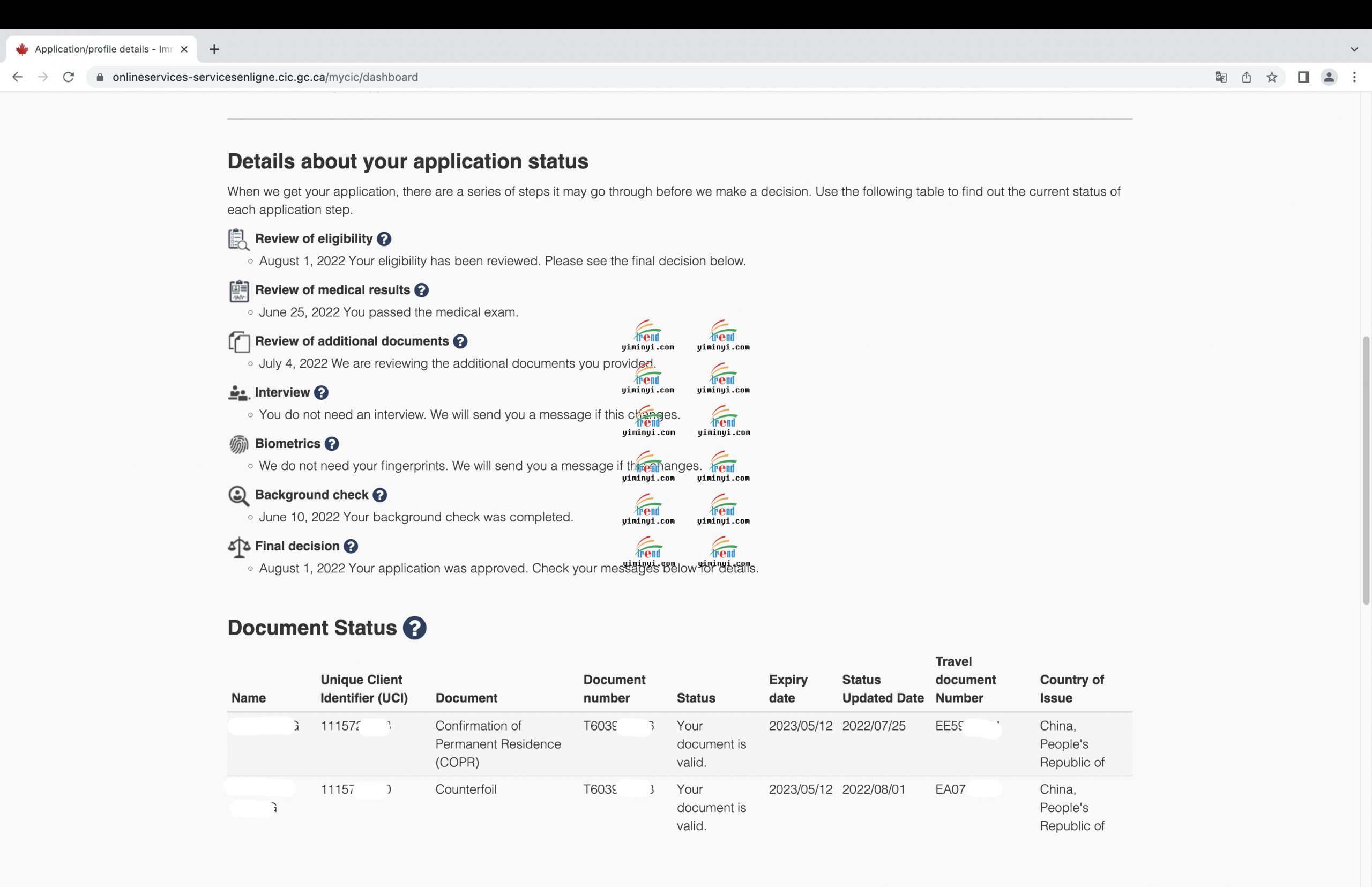 现在申请移民的程序随时都会变好,这次是主申请人在境内,移民部发送了一个PR PORTAL给客户,让客户自己登陆上去之后确认PR的身份。移民官会立刻处理并生成一份移民纸,让客户下载,同时移民部会在线处理枫叶卡的申请,大约几周就可以邮寄给客户了。