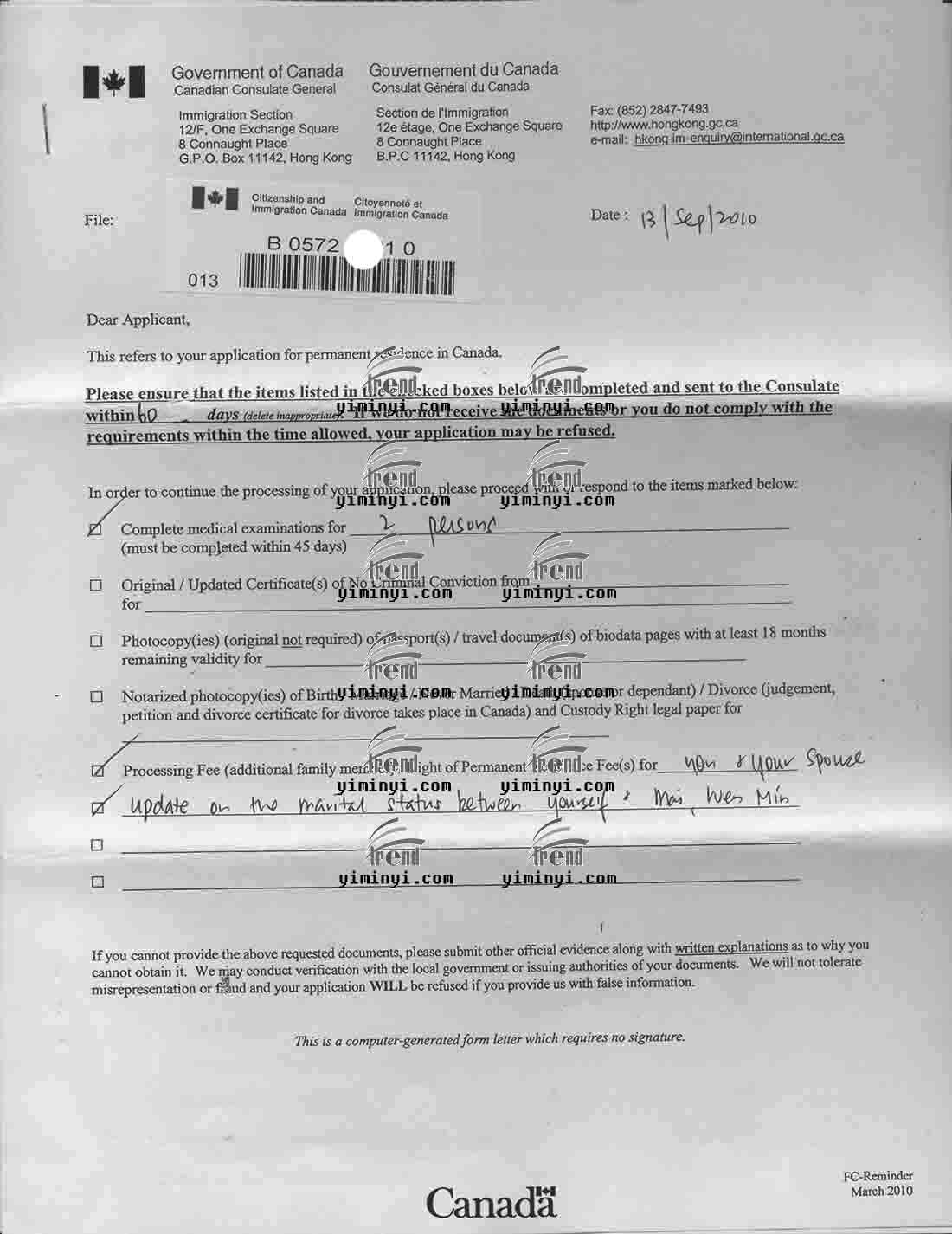 加拿大技术移民,有亲属加分,陈先生,2年成功。
