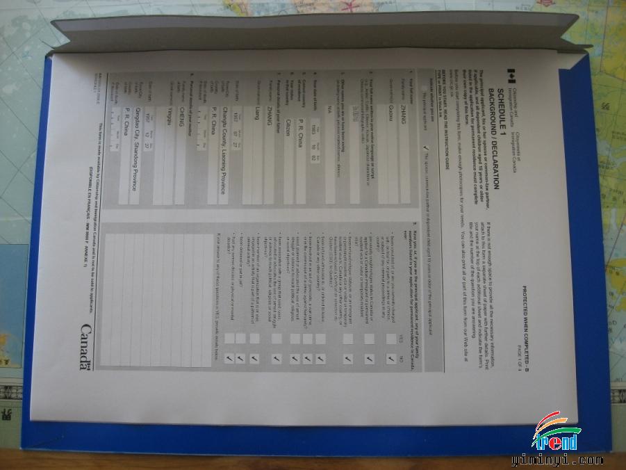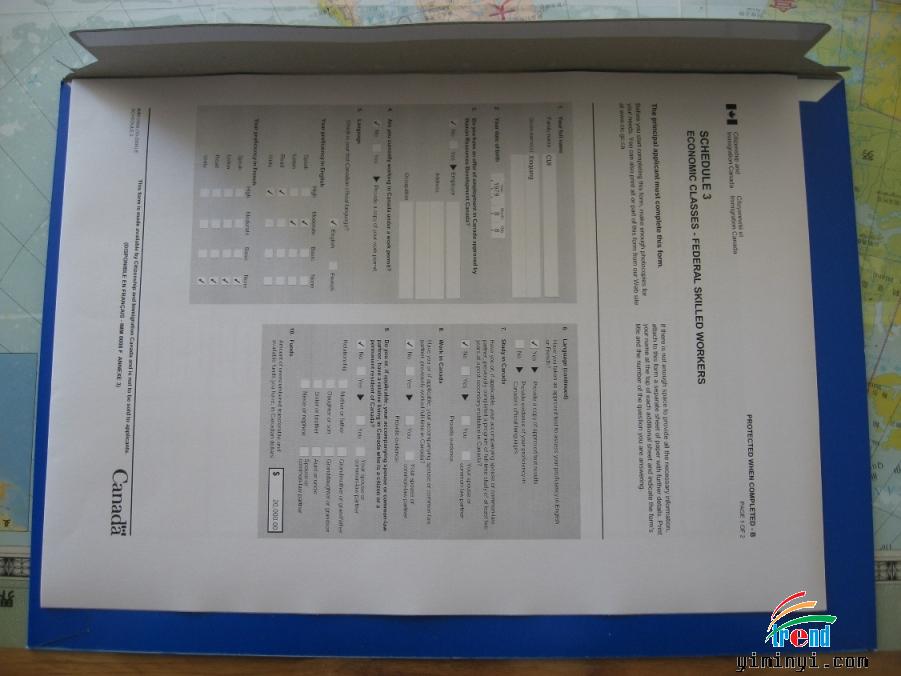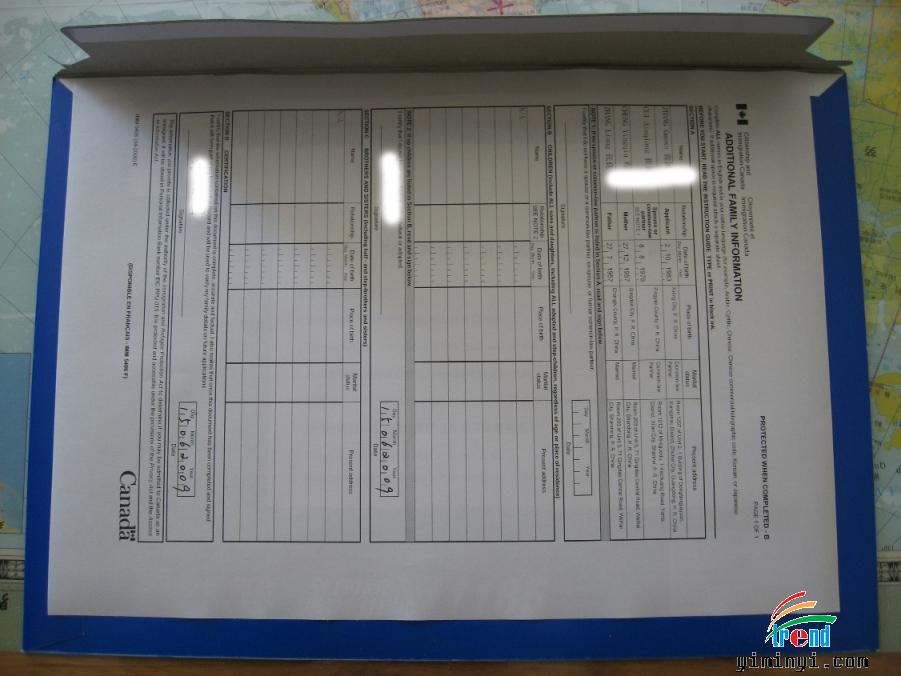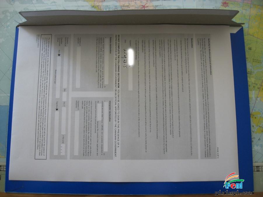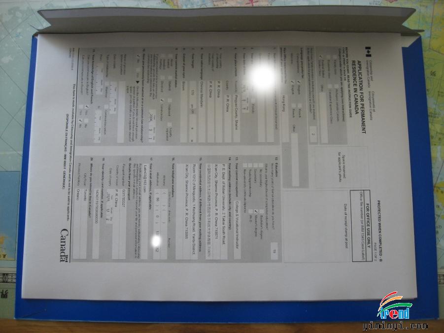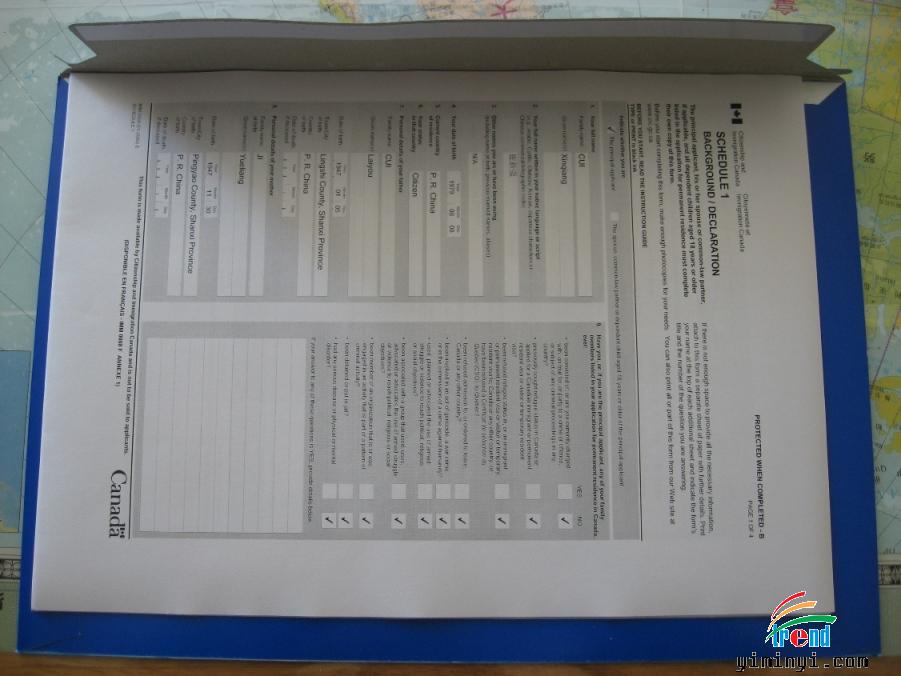 加拿大移民部CIO申请一份。
