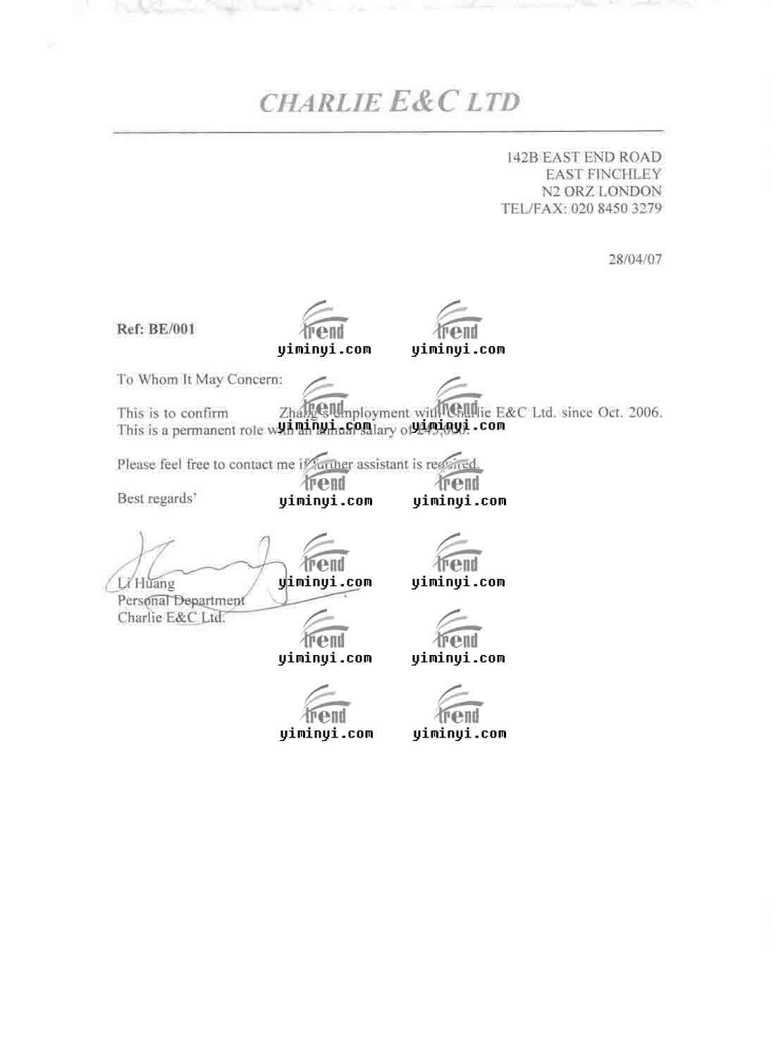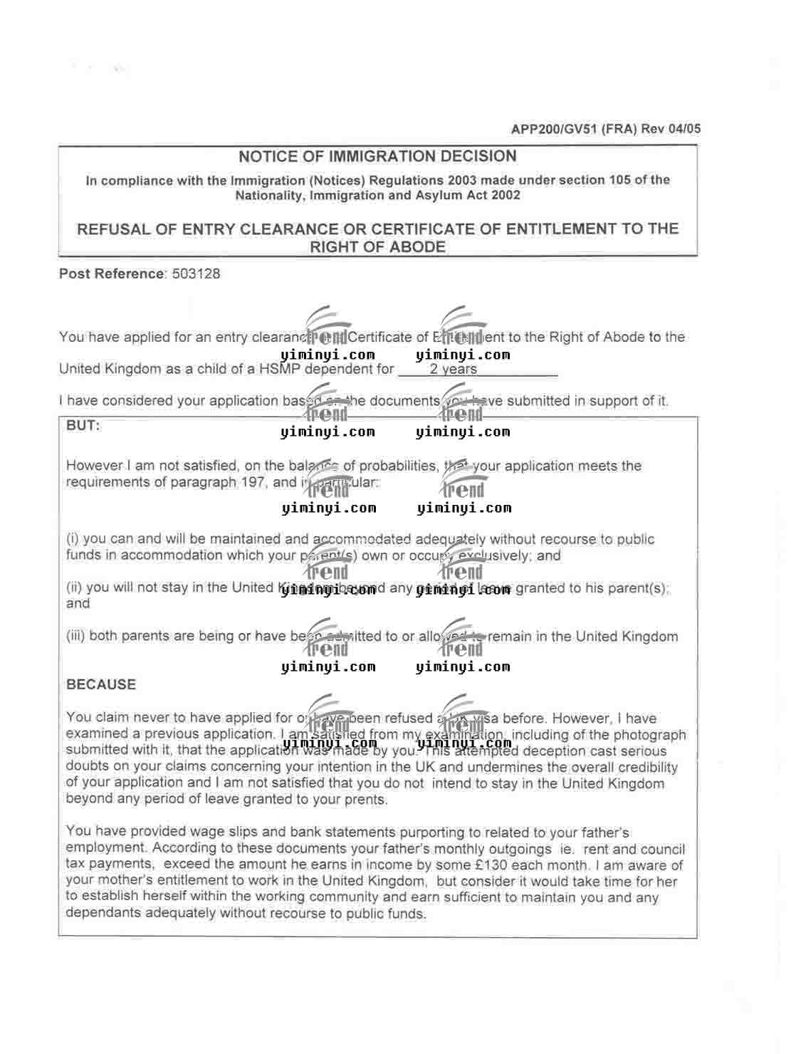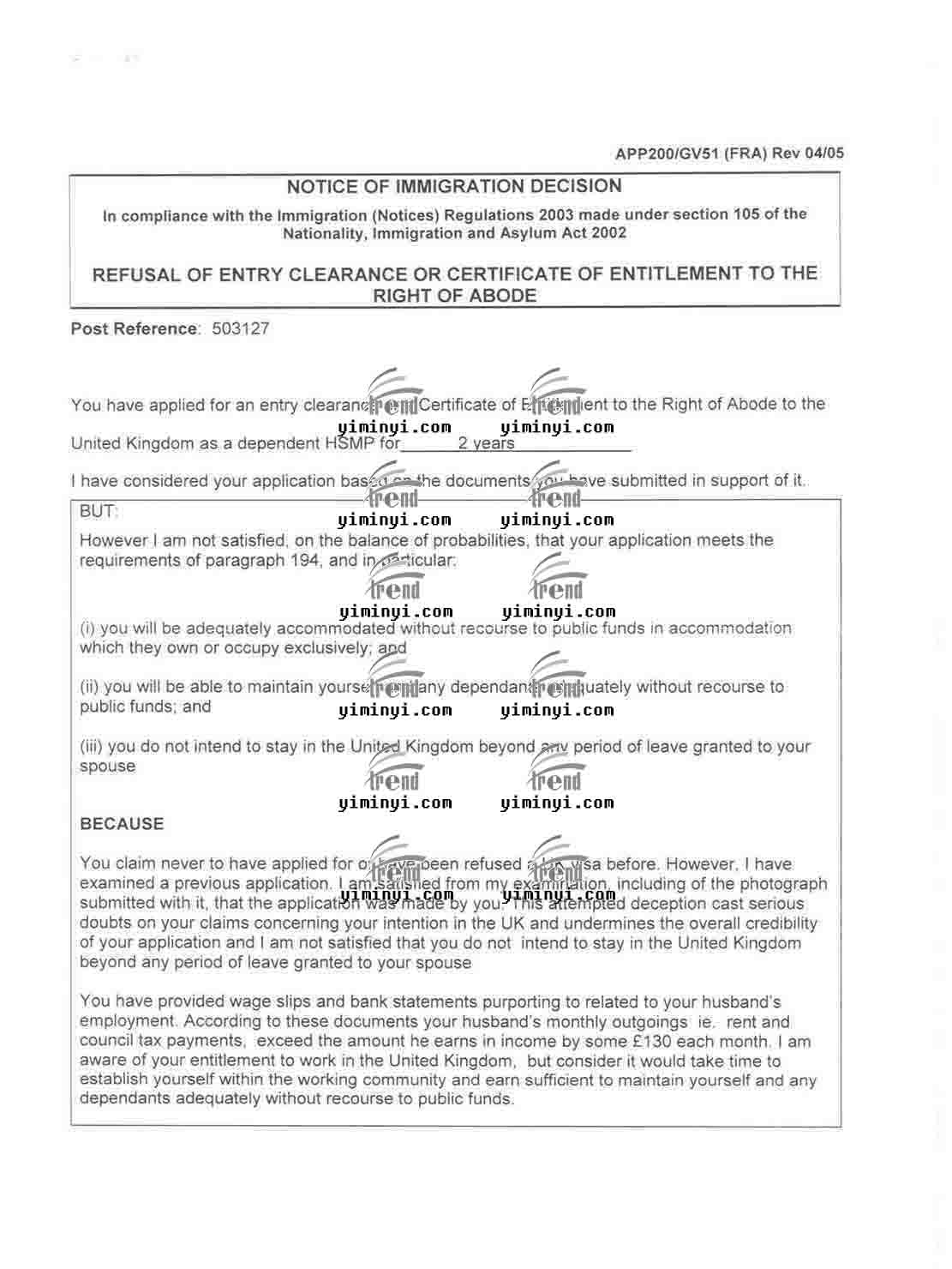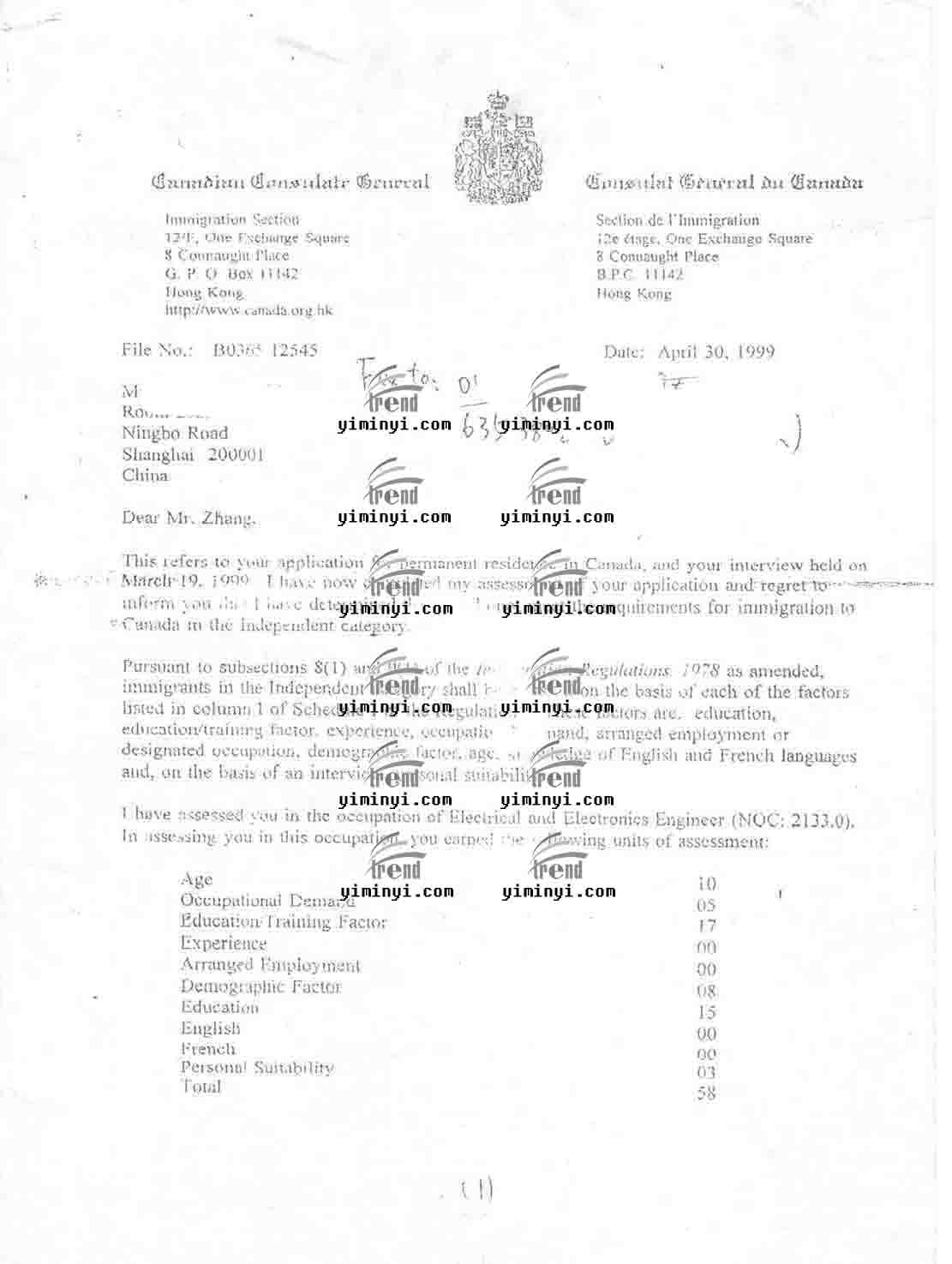 李女士,1964年出生,1999年委托某中介公司办理加拿大技术移民,并连续拒签二次,后来先生申请的英国高技术移民,并在2005年赴英国,后来办理了二次赴英国团聚移民,但也遭到拒签。2007年委托我们再次办理,我们经过仔细研究英国移民签证,在2007年7月成功为李女士申请成功,后在英国申请绿卡,具体的背景请看这个内容http://www.yiminyi.com/refuse4cases/。。。本文中,提供了某中介公司前后二次帮助申请加拿大技术移民,但没有成功的所有拒签记录,后申请英国拒签二次的拒签记录,以及我们第五次为该客户申请英国高技术移民的签证。。。。。。