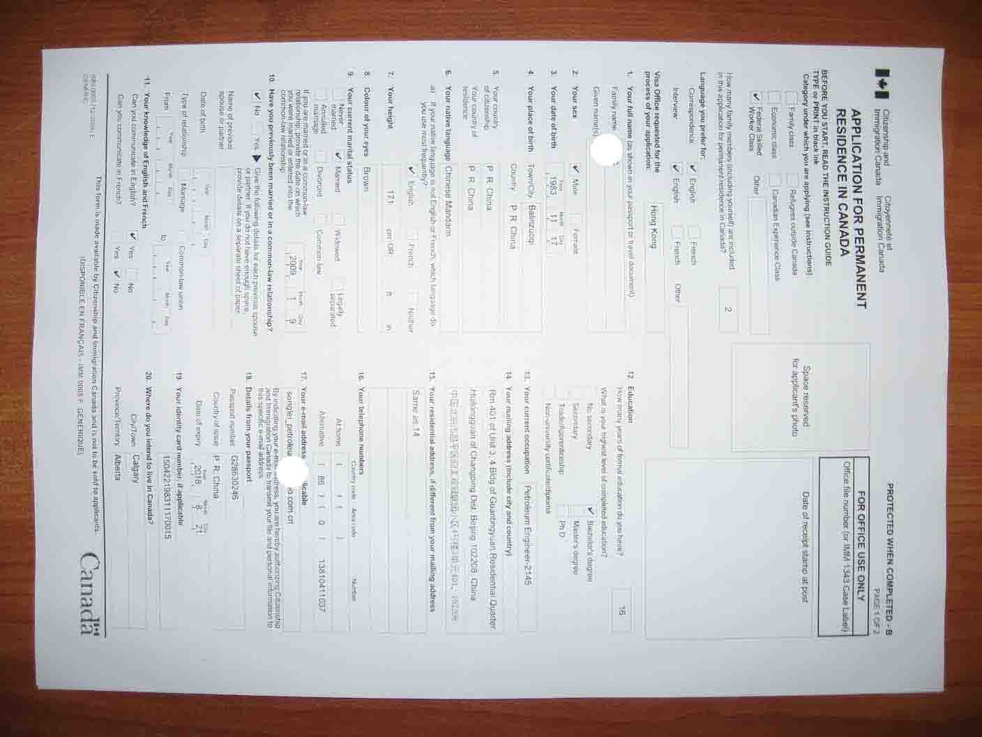 宋先生,1983年出生,2002-2006年中国石油大学北京分校就读,获得电子信息工程专业学士学位,毕业之后先在中油测井工作,后在道达尔勘探与生产有限责任公司,在申请加拿大移民之前在壳牌中国担任Completion engineer,2010年开始申请移民,2012年申请成功。。。。。。在本文中,我们提供了宋先生所有递交给加拿大移民部CIO的初审文件。。。。。。