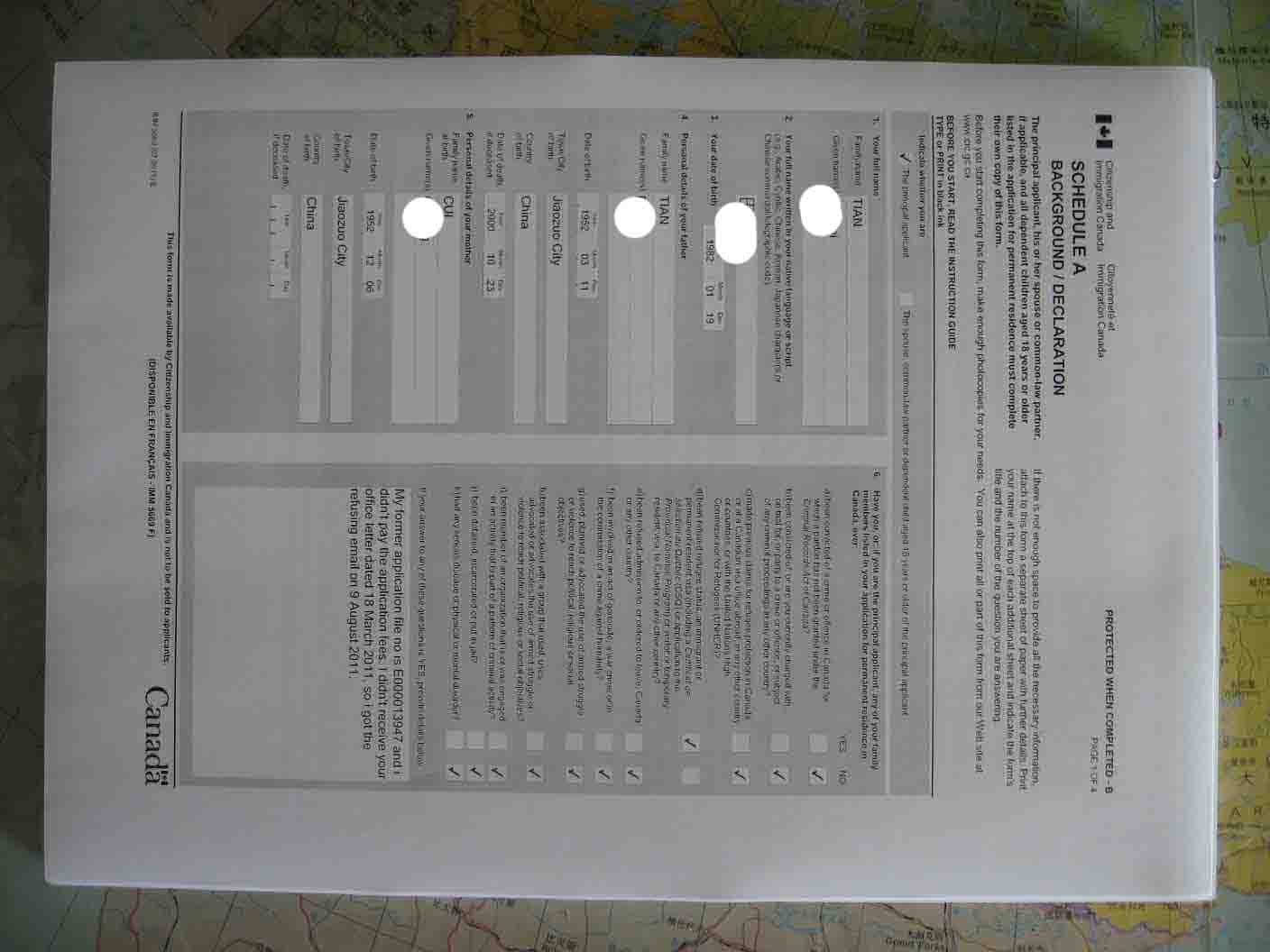田先生,1982年出生,2001-2005年河南理工大学本科,专业是计算机科学与技术,2005-2008年北京航空航天大学模式识别与智能系统硕士学位。我们在2011年6月开始帮助申请材料,8月正式递交了所有的申请给加拿大移民部CIO处理中心,仅仅一年就收到了移民签证。。。。。。