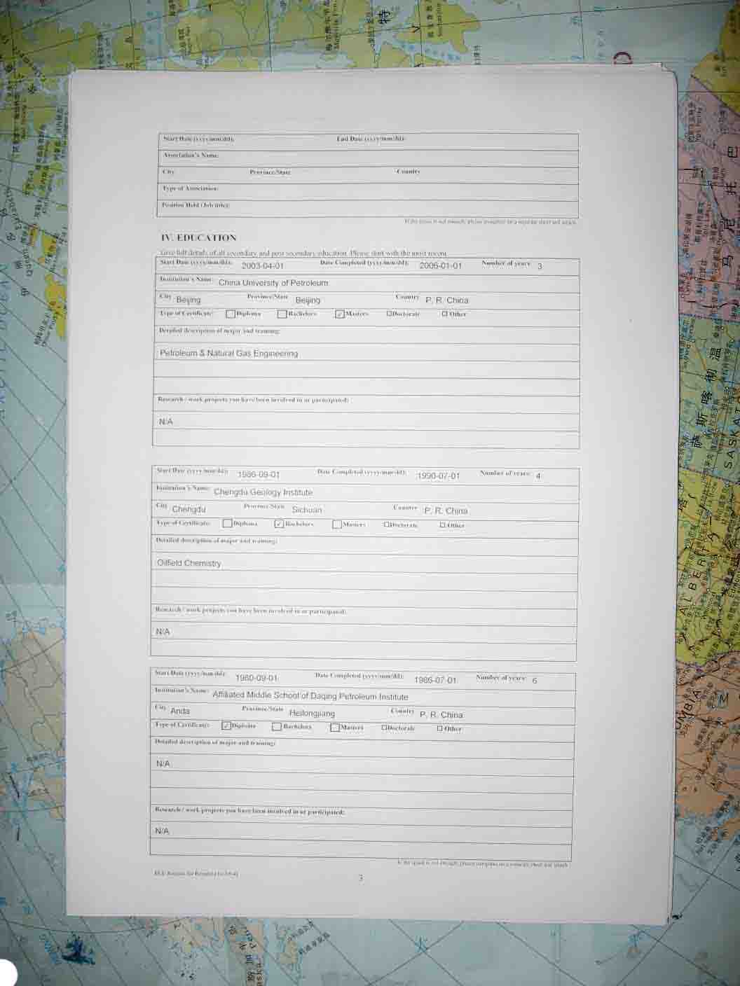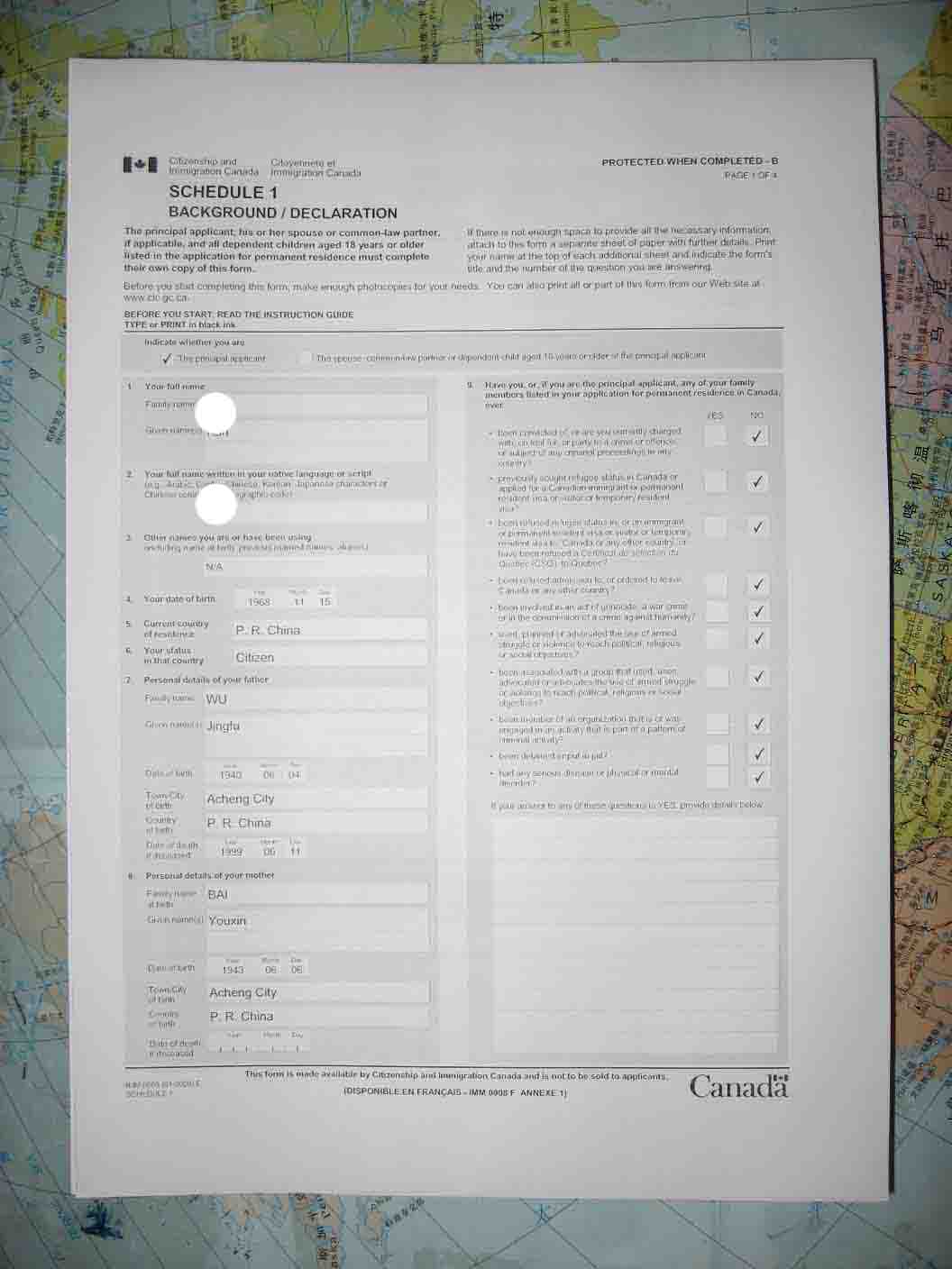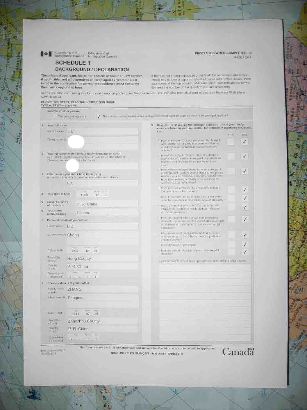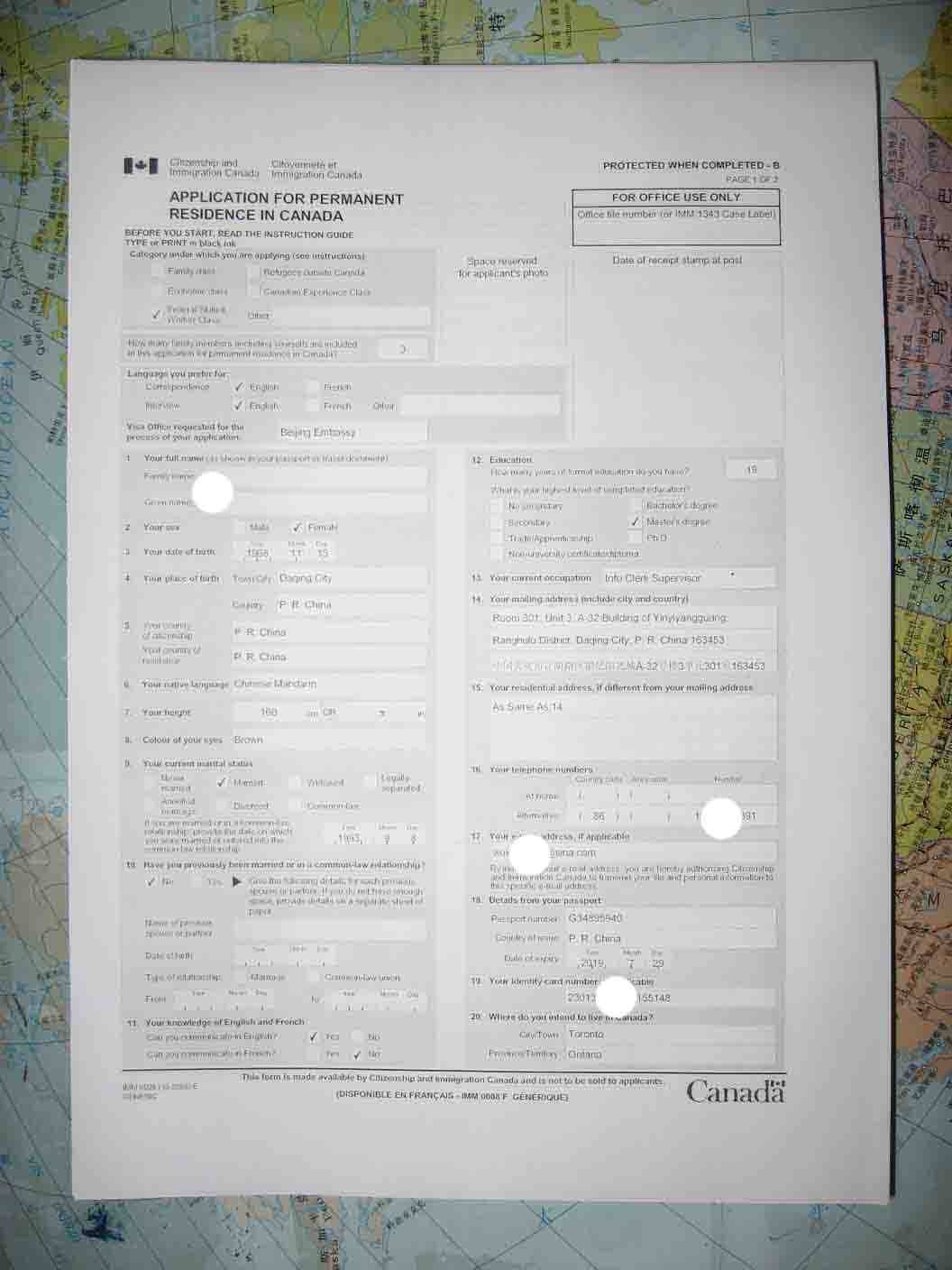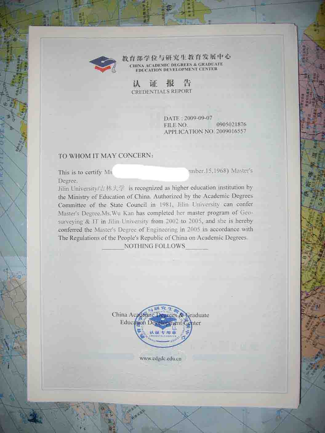 吴女士,1968年出生,1986-1990年黑龙江大学就读,专业是图书情报学,获得学士学位。2002-2005年在吉林大学就读,专业是地球探测与信息技术,获得硕士学位。本人一直在大型国企从事工程师和高级工程师。在2010年3月正式递交了加拿大移民的申请,在2年之后获得移民签证。。。在本文中,我们提供了申请移民的所有的文件。。。。。。