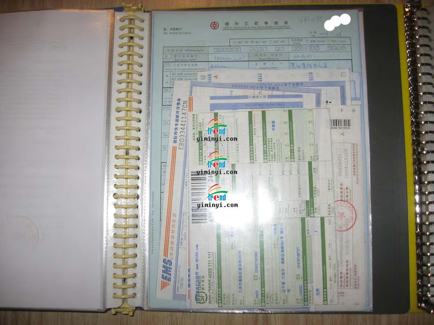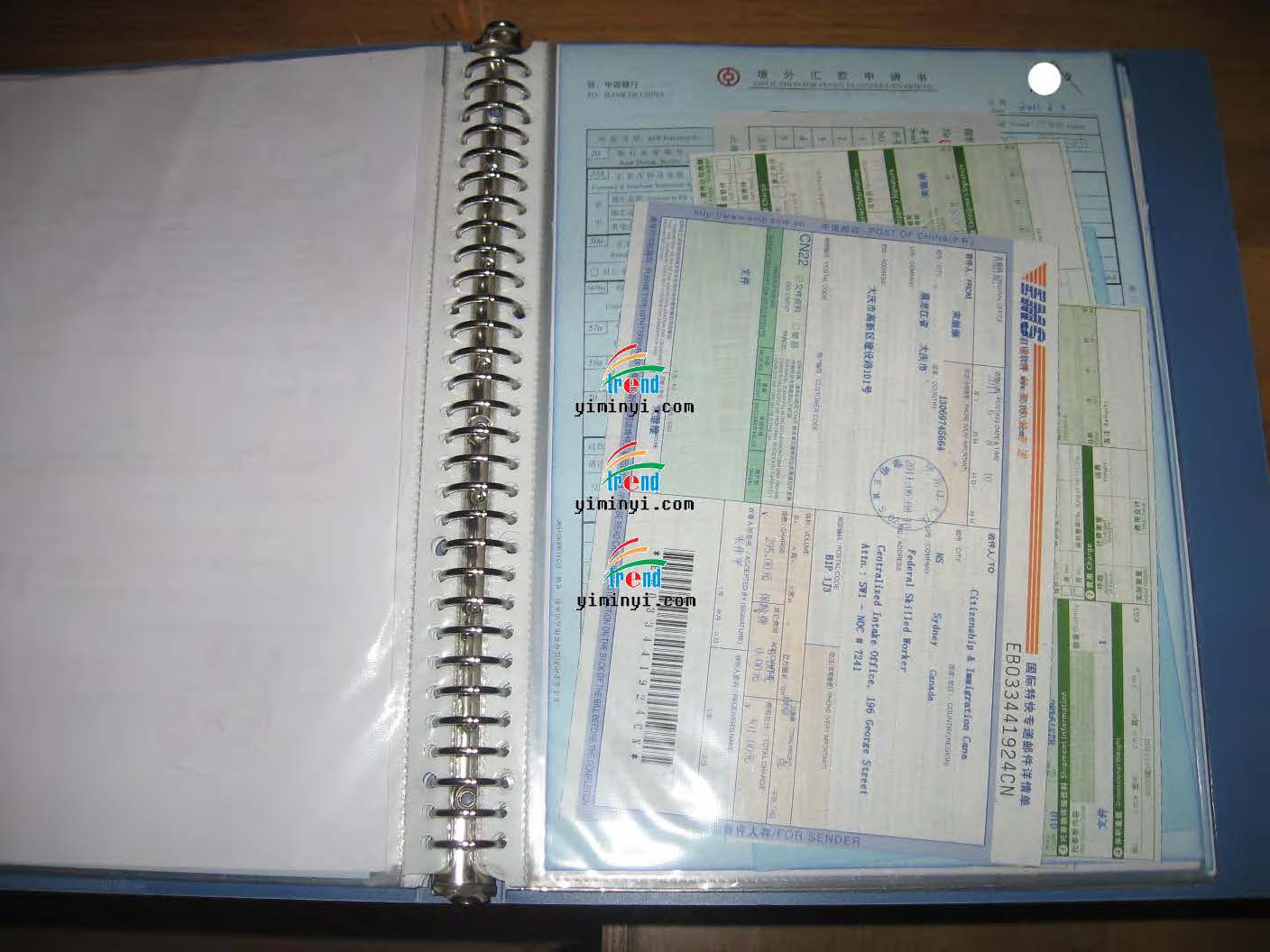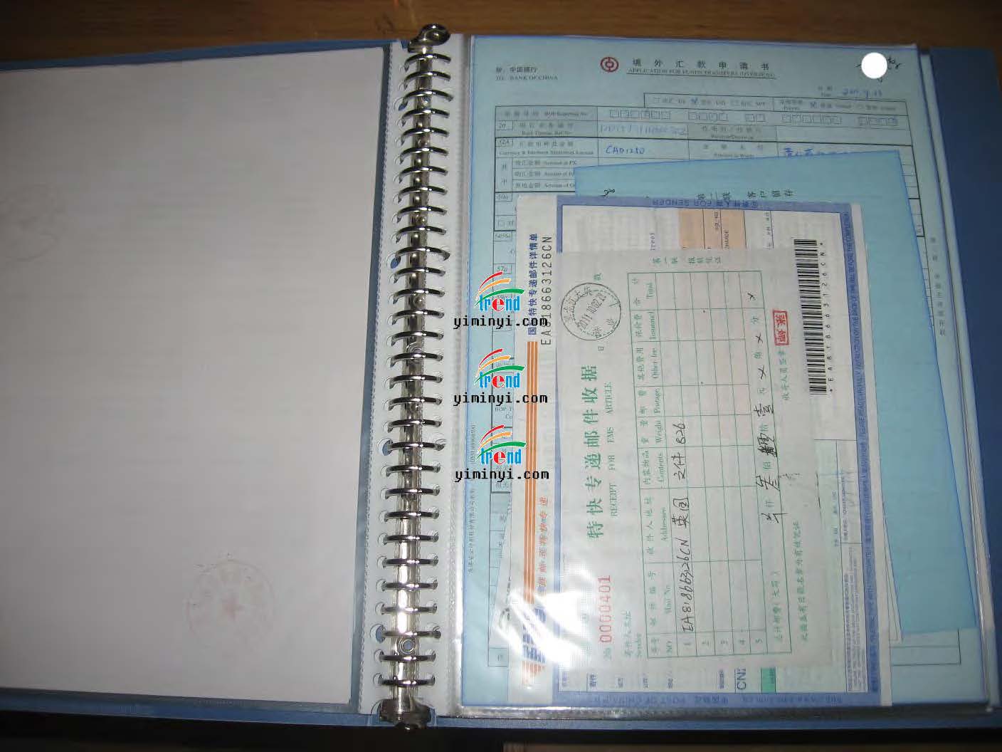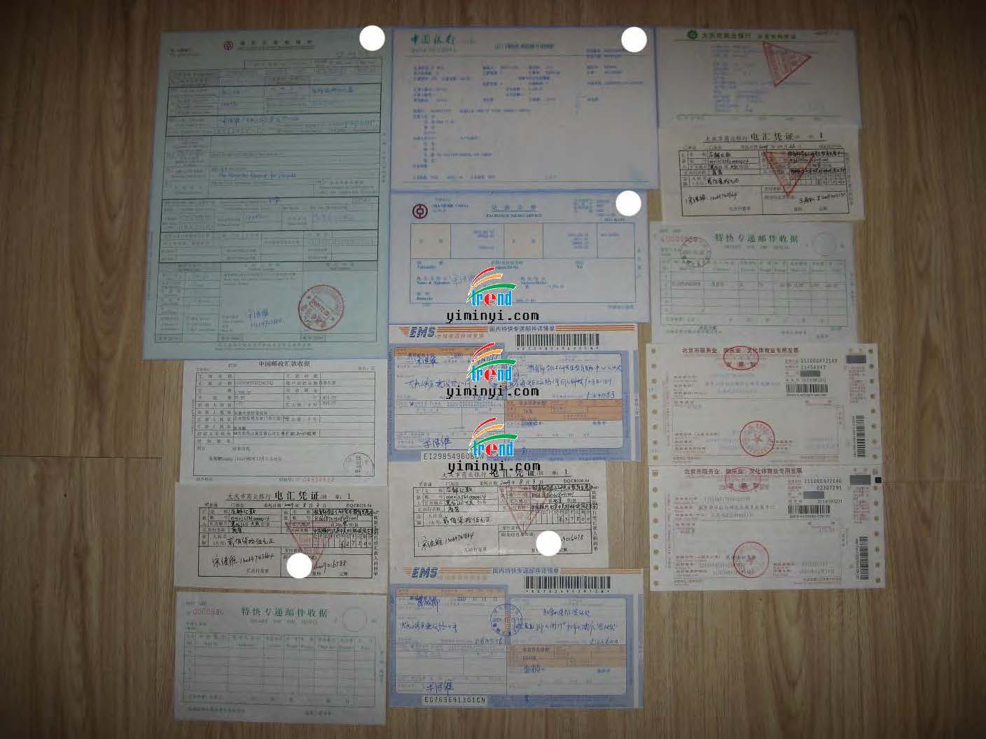 成功案例的个人票据,包括签约合同,申请费汇票收据,快递单据等!