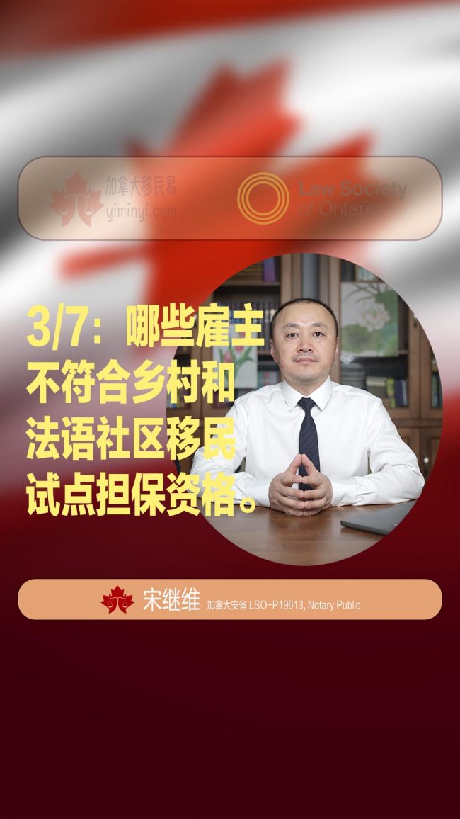 哪些雇主不符合乡村和法语社区移民试点担保资格。 移民快讯yiminyi2025年3月24日大家好,我是宋继维,上一集视频中,和大家分享了在乡村和法语社区移民试点项目中,什么样的雇主符合担保资格,那今天…